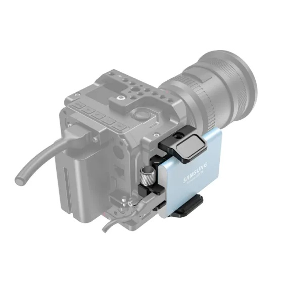 Firmly secure your SSD on your camera or camera cage using this Universal Holder for External SSD from SmallRig. This holder features a spring-loaded clamp that adjusts to fit a variety of SSDs such as the Samsung T7, and a soft rubber interior to prevent scratches.