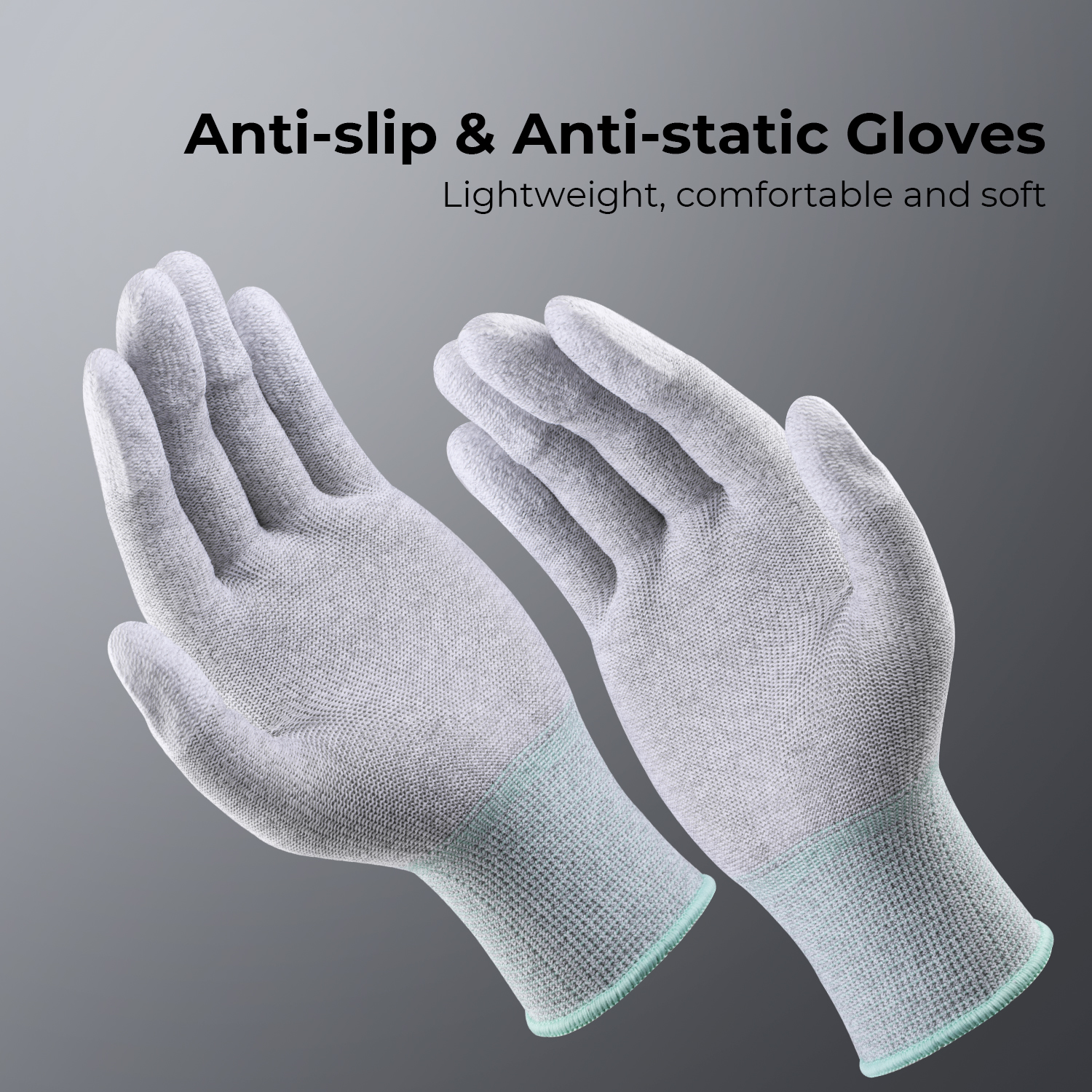 - Glove finger parts for PU coating, can effectively prevent static electricity and increase friction, grip more firmly; fit the palm, elastic filament, fit each hands.