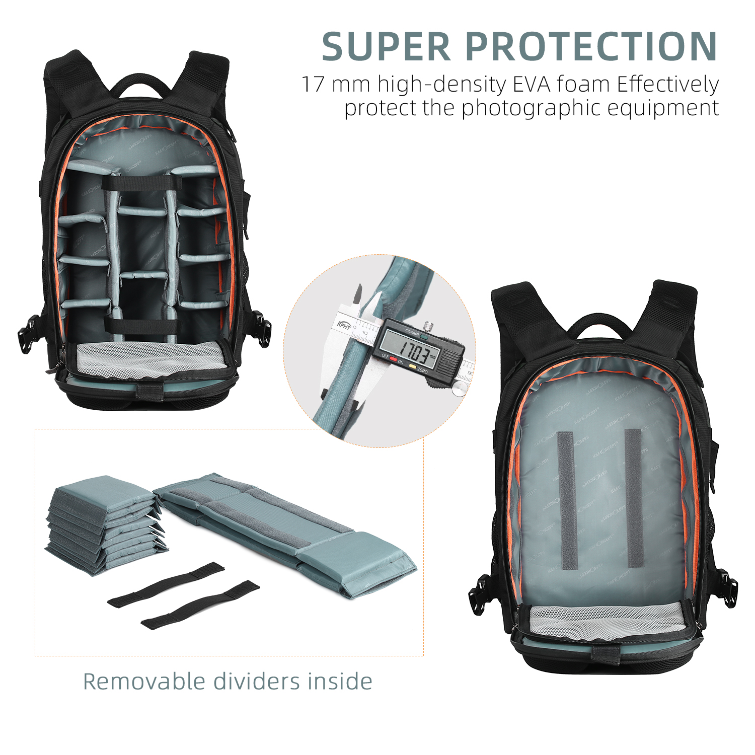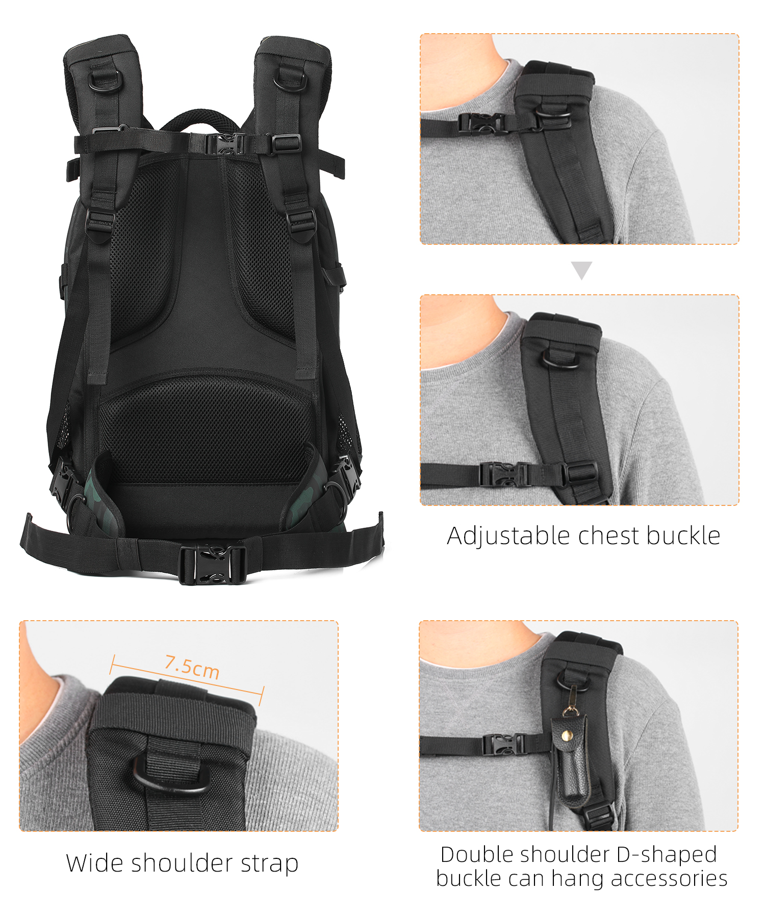The KF13.119 (23L) Multifubctional Camera Backpack is featured with adjustable velcro multi-section dividers system that allows for many configurations. The detachable dividers for free combination. Protective foam dividers are fully customizable for your gear.