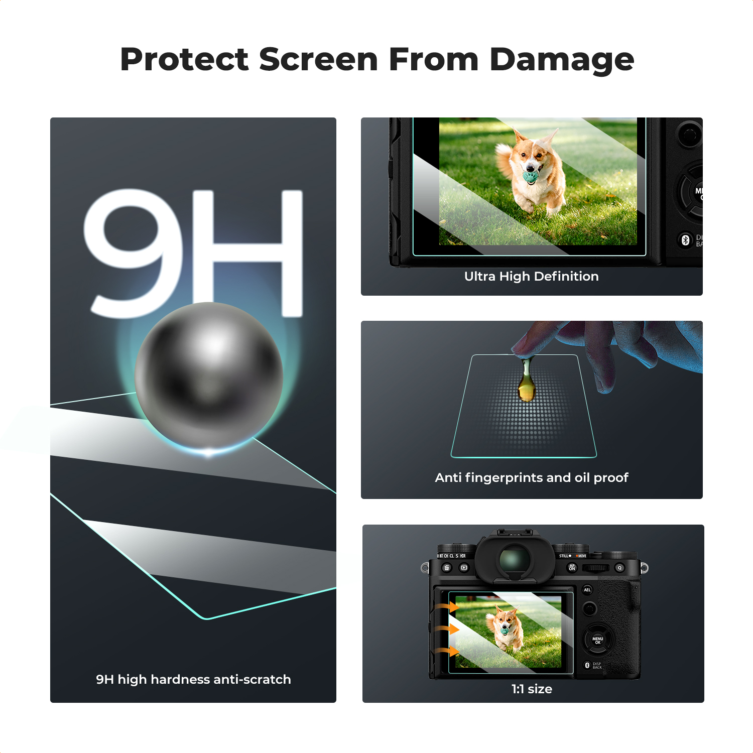 The K&F Concept tempered glass screen protector set designed specifically for the Fujifilm X-T5, offering 9H hardness for superior scratch and impact resistance. At just 0.3mm thick, it ensures crystal-clear visibility and smooth touchscreen operation while protecting against dust, fingerprints, and damage.