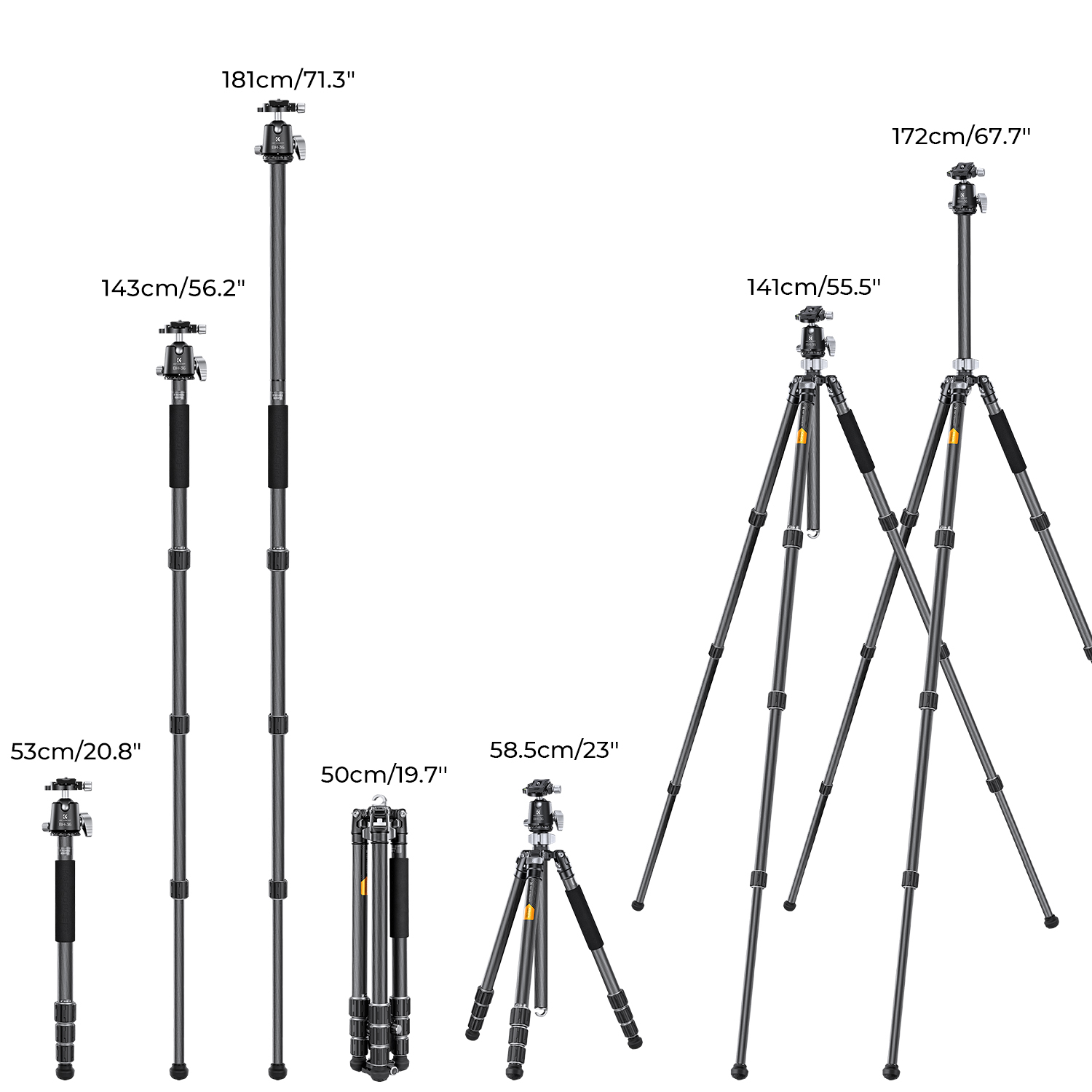 - Adjustable Height: The tripod includes multiple leg sections that can be easily extended or collapsed, allowing for a customizable height range and adaptability to different environments.
