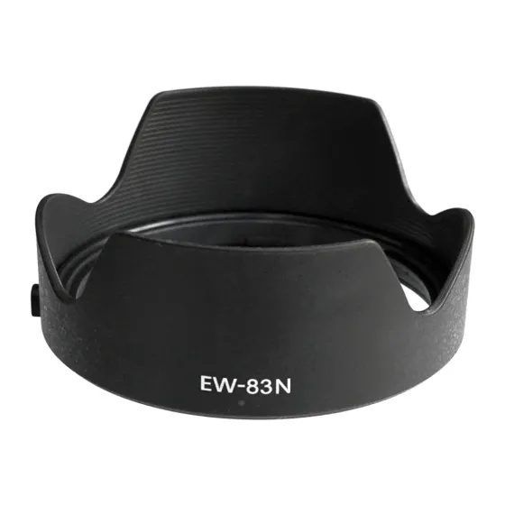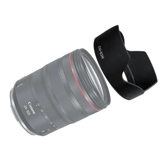 Dedicated to the Canon RF 24-105mm f/4L IS USM lens, the EW-83N Lens Hood helps to minimize flare by deflecting stray light from entering the lens. The hood also provides additional protection to the lens from accidental impacts, bumps, or scratching. It is offered here as a spare or replacement for the one originally included with the lens. Compatibility: Canon RF Key Specification: RF 24 105mm F4L Hood, RF 24 105 Lens Hood, Blocks stray light from entering the lens RF 24 105 mm F4L Hood Shade, Reversible for easy storage EW 83N Hood Replacement, Allows putting on a Ф77mm filter and a Ф77mm lens cap Non-glare matte finish prevents reflections; No vignetting will be caused with the hood on