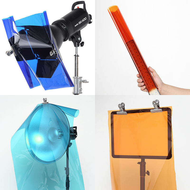 1. Use combinations of these filters to create different effects, perfect for photo studio strobe flash light LED lights.