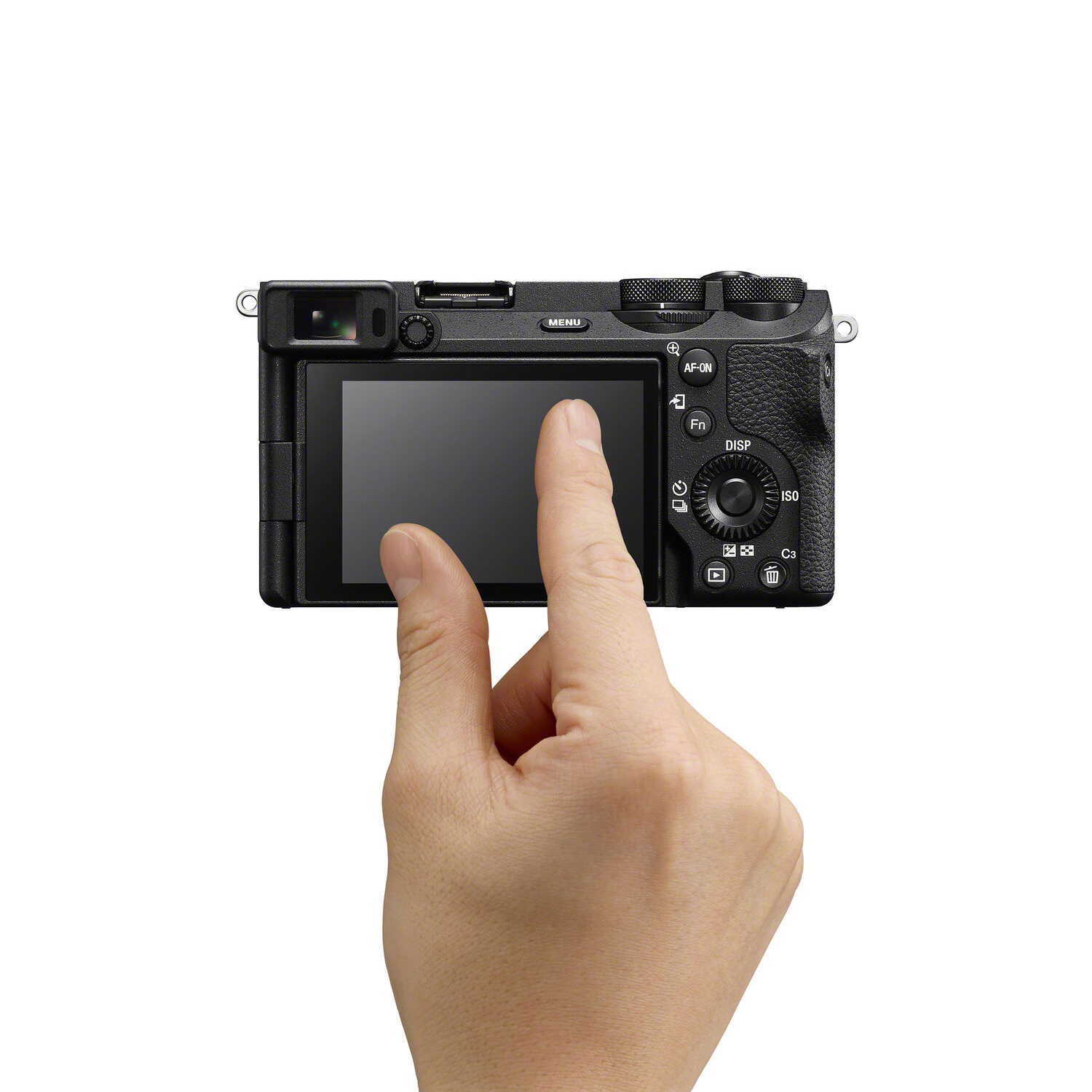- The side-opening, vari-angle 3.0" 1.03m-dot LCD touchscreen works from high, low, and front-facing angles.