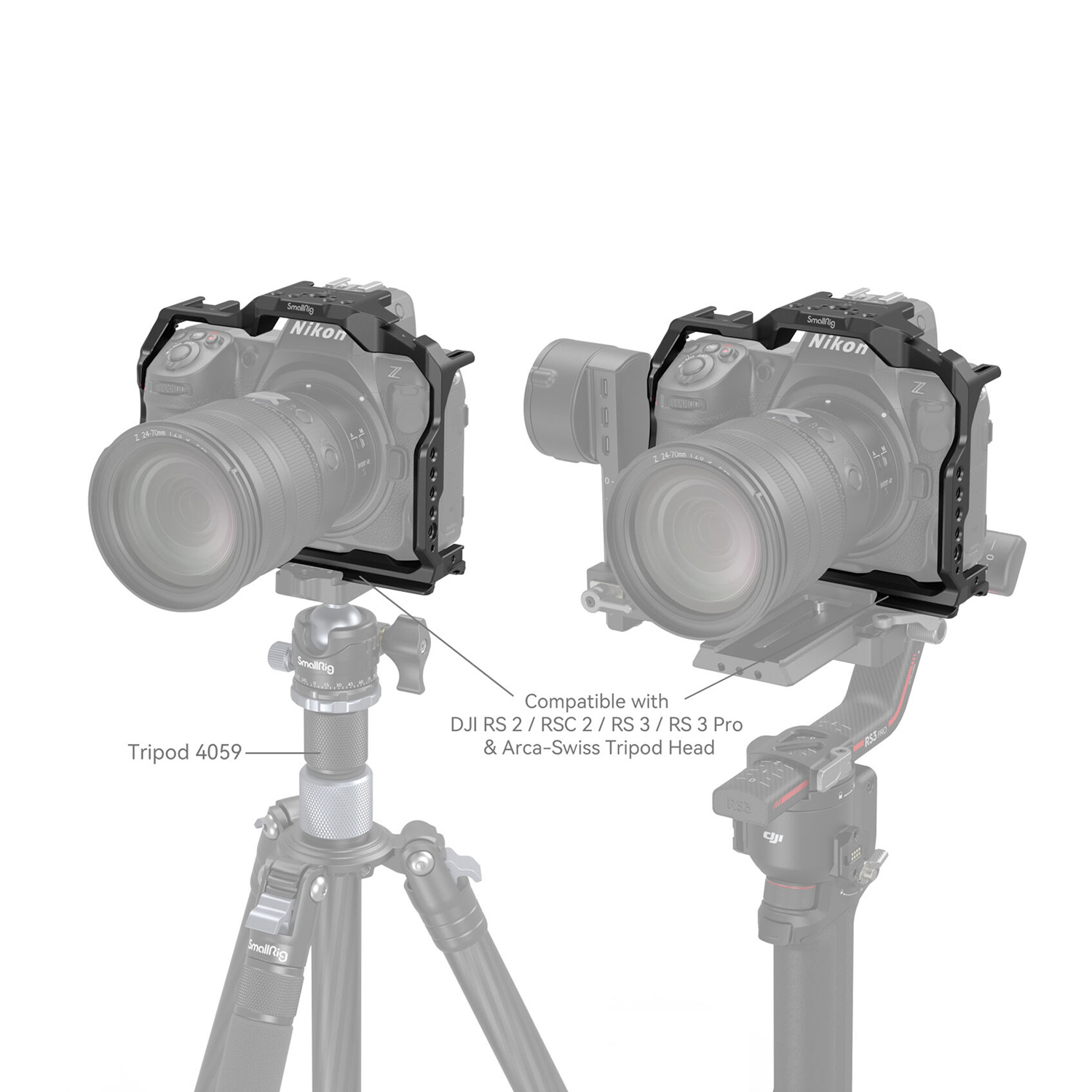 · Quick-Release Plate Compatibility: Arca-Swiss quick-release plate supports Arca-type tripods or DJI RS 2 / RSC 2 / RS 3 / RS 3 Pro gimbals.